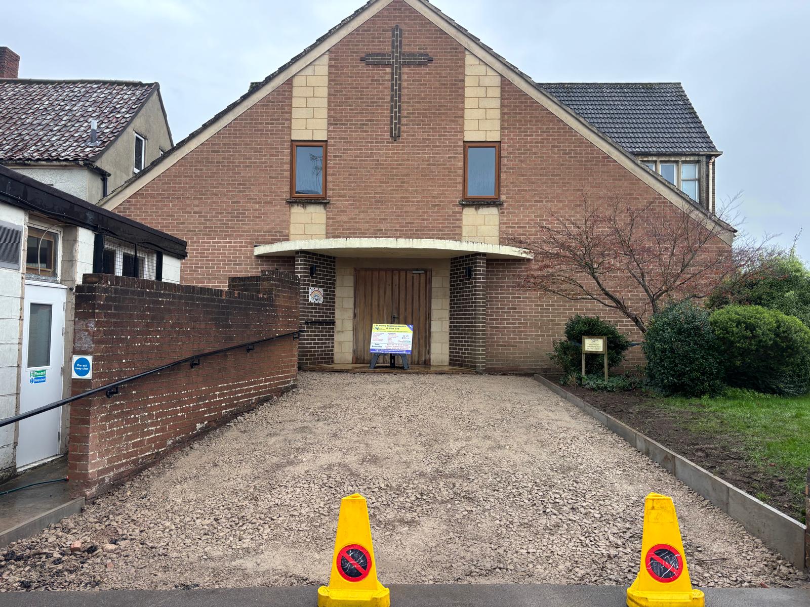 The approach ramp has been re-surfaced and smoothed out to improve access. This is the first stage of several works designed to make access to the Church and Porch house safer and easier.